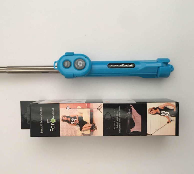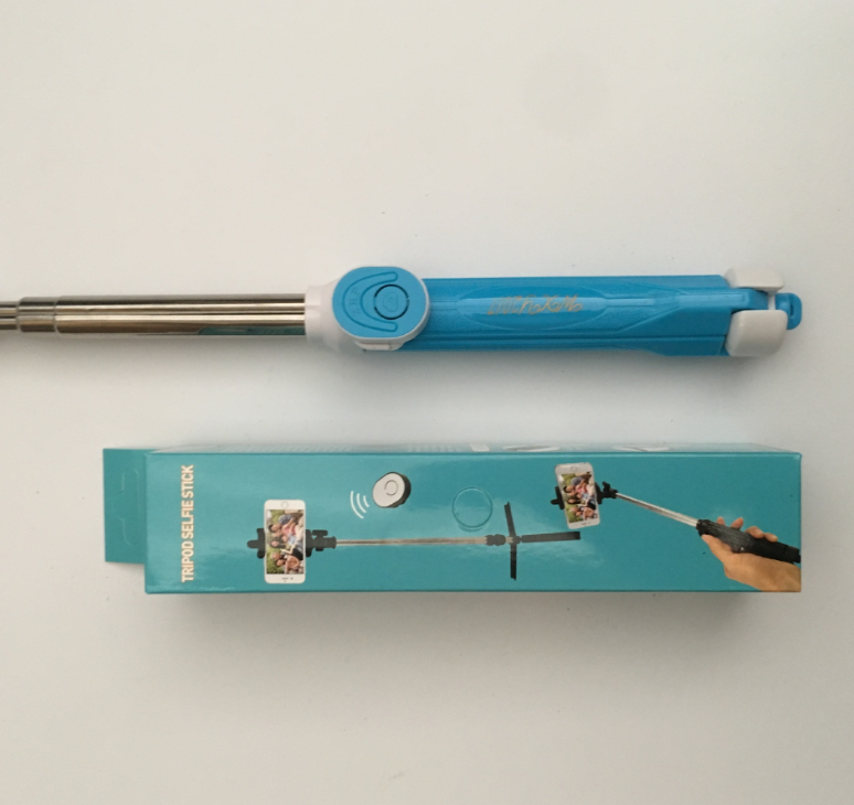 Product parameters:Name: Tripod integrated selfie stickHandheld stretch length: 760mmTripod standing stretching height: 813mmSelf-timer lever folded length: 189mmMobile phone clip stretching distance: 85mmHandle material: absClip material: absFinished belt box gross weight: 132 gramsPacking box specification: 195*45*47MMPacking quantity: 100pcsOuter box size: 44.5*38*25CMFCL gross weight: 14kgBluetooth solution: Lun timesBluetooth version: 4.0Remote control distance: 10 metersBattery Properties: Mercury Free Button BatteryBattery life: Can take more than 1000 photos (turn off the power when not using the remote control)