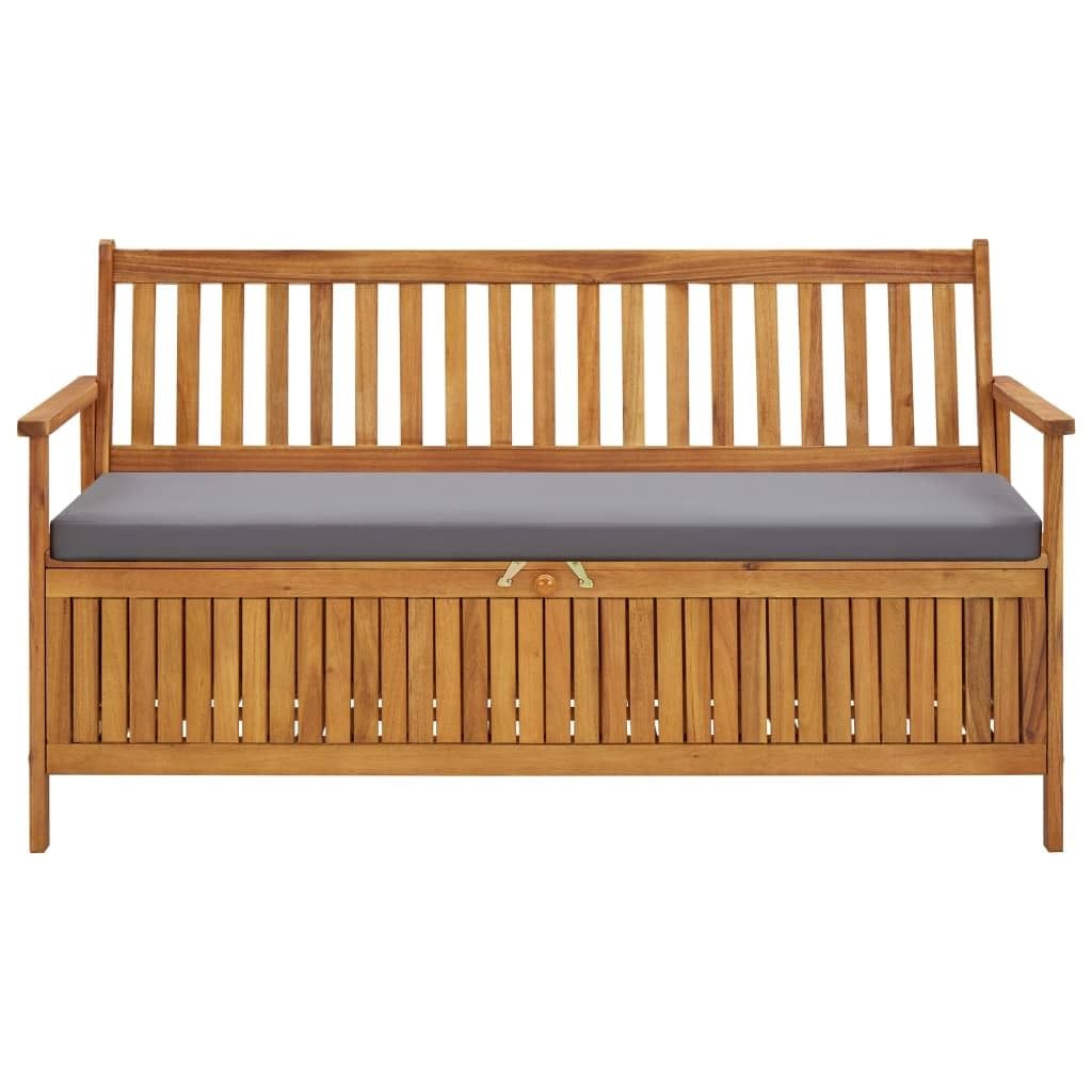vidaXL Patio Storage Bench with Cushion 58.3″ Solid Acacia Wood